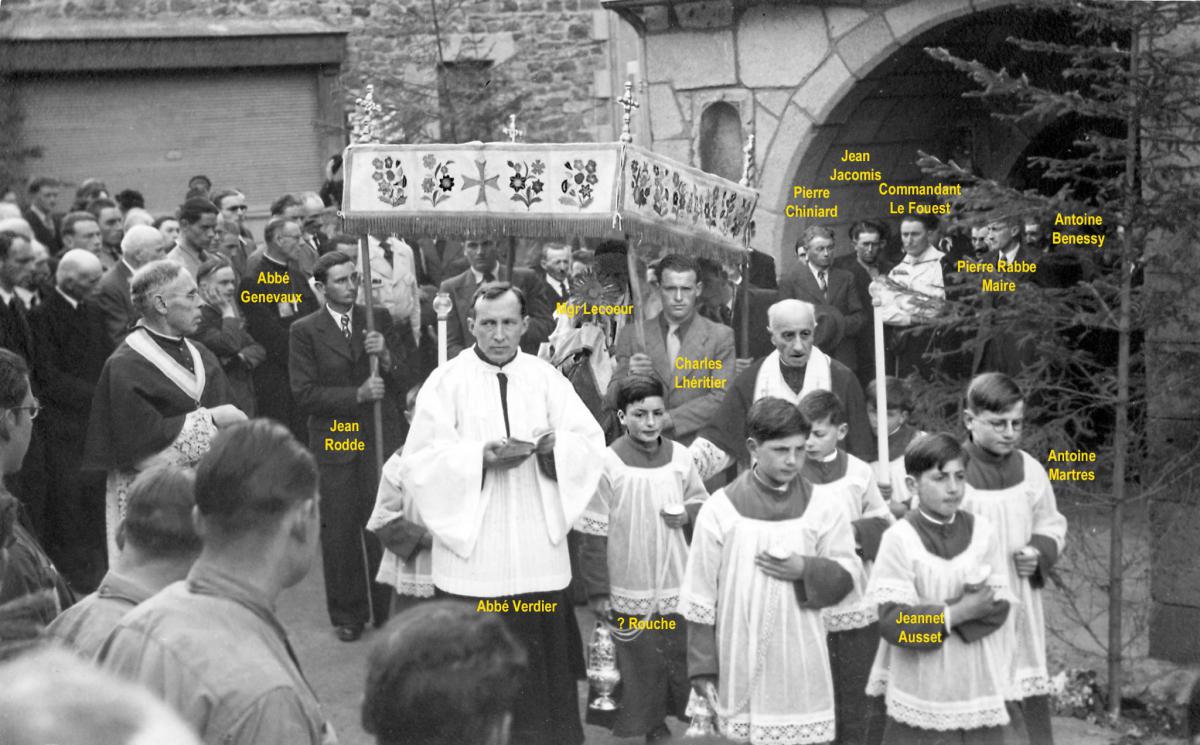 Lors de la réouverture de l’église le 14 juin 1941, l’évêque de Saint-Flour, Augustin Lecoeur, célébra la