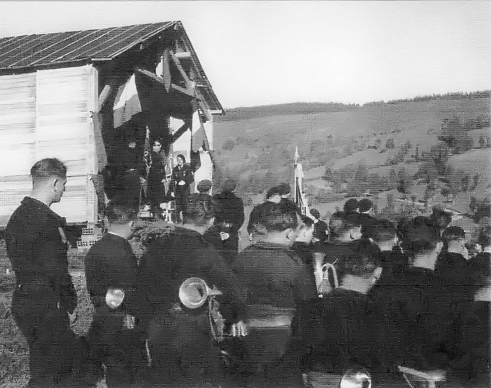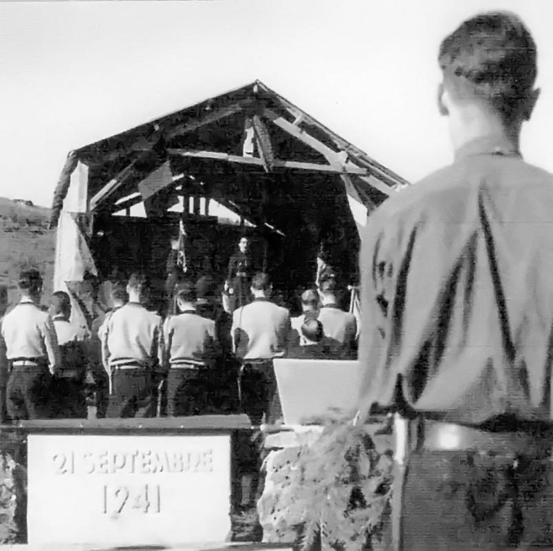 Figure 1 : 21 09 1941 Inauguration de la chapelle de La Champ avec l’aumônier Genevaux . Tiré du livre photo Page 22